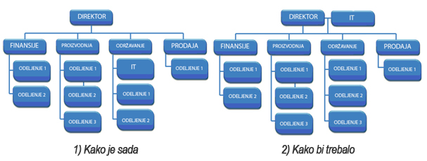Zato je najsigurnije i najoptimalnije da odlučivanje i preduzimanje koraka u oblasti informacionih tehnologija, ili bar najveći deo nadležnosti u toj sferi, bude direktno podređeno posebnoj organizacionoj jedinici koja će se ovim poslovima baviti. Ta organizaciona jedinica, sastavljena od par ili više IT inženjera bila bi direktno podređena samom vrhu kompanije – direktoru, ali bi imala i direktnih nadležnosti koje bi sprovodila samostalno, bez pravdanja odluke top menadžmentu.